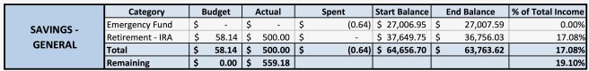 I put $500 towards my Roth IRA this month, keeping me on track to be able to max it out for 2020. I keep that money in the same account as my sinking funds and make one lump contribution at the end of the year (rather than monthly), which is why the monthly ending balance doesn’t factor in that $500. I’m currently looking into switching to monthly contributions, to help capitalize on compound interest.